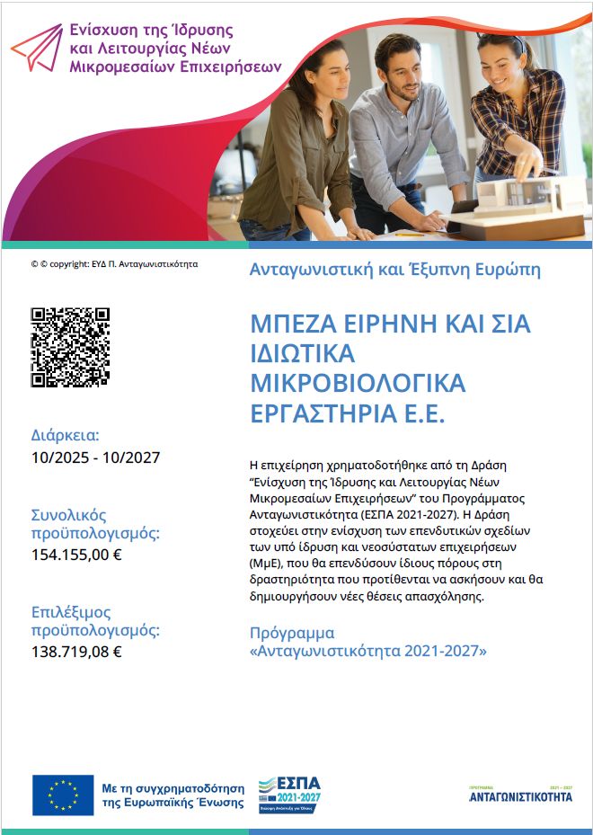 Το μικροβιολογικό εργαστήριο “microlab” Μπέζα Ειρήνη στεγάζεται πλεον στο νέο σύγχρονο, καλαίσθητο χώρο, παρέχοντας άμεσα, αξιόπιστα αποτελέσματα.